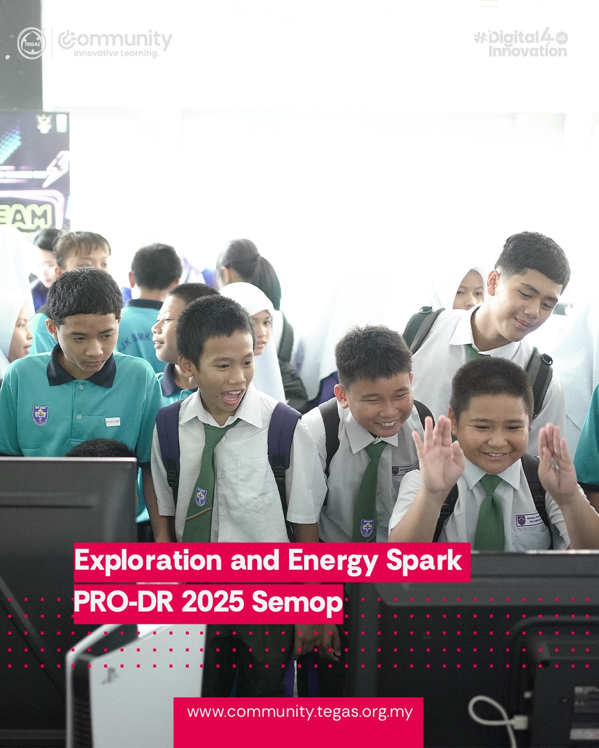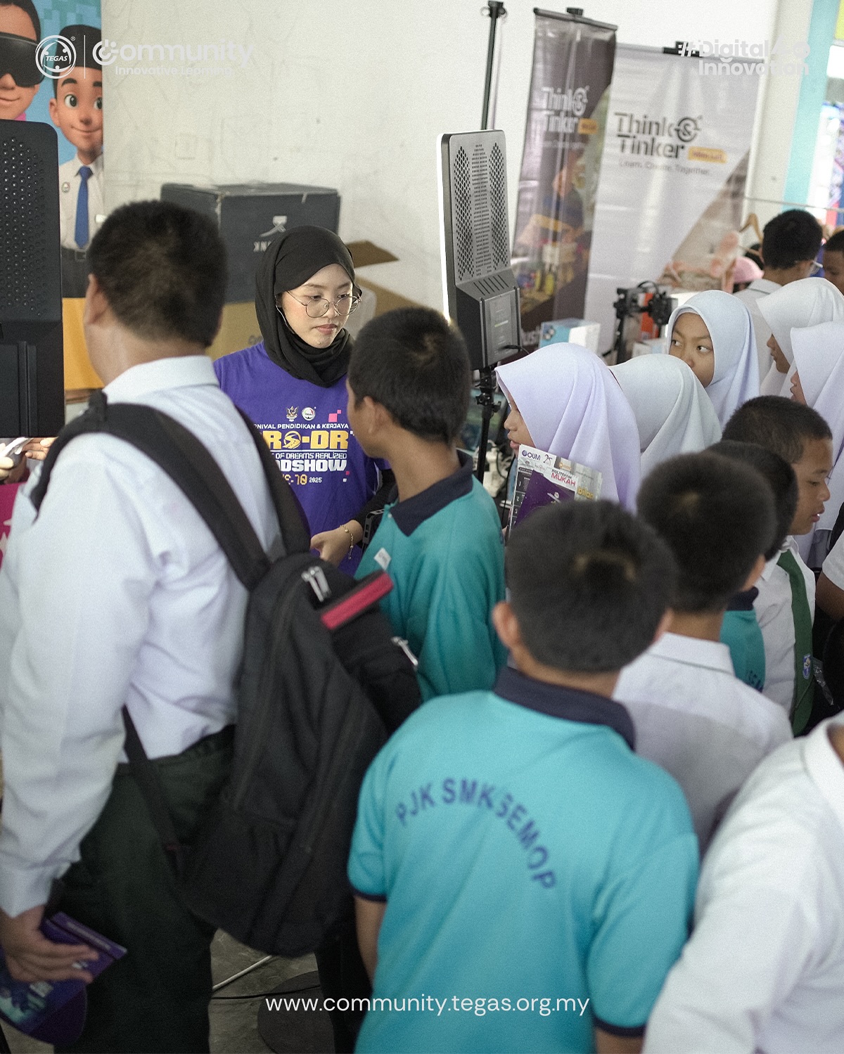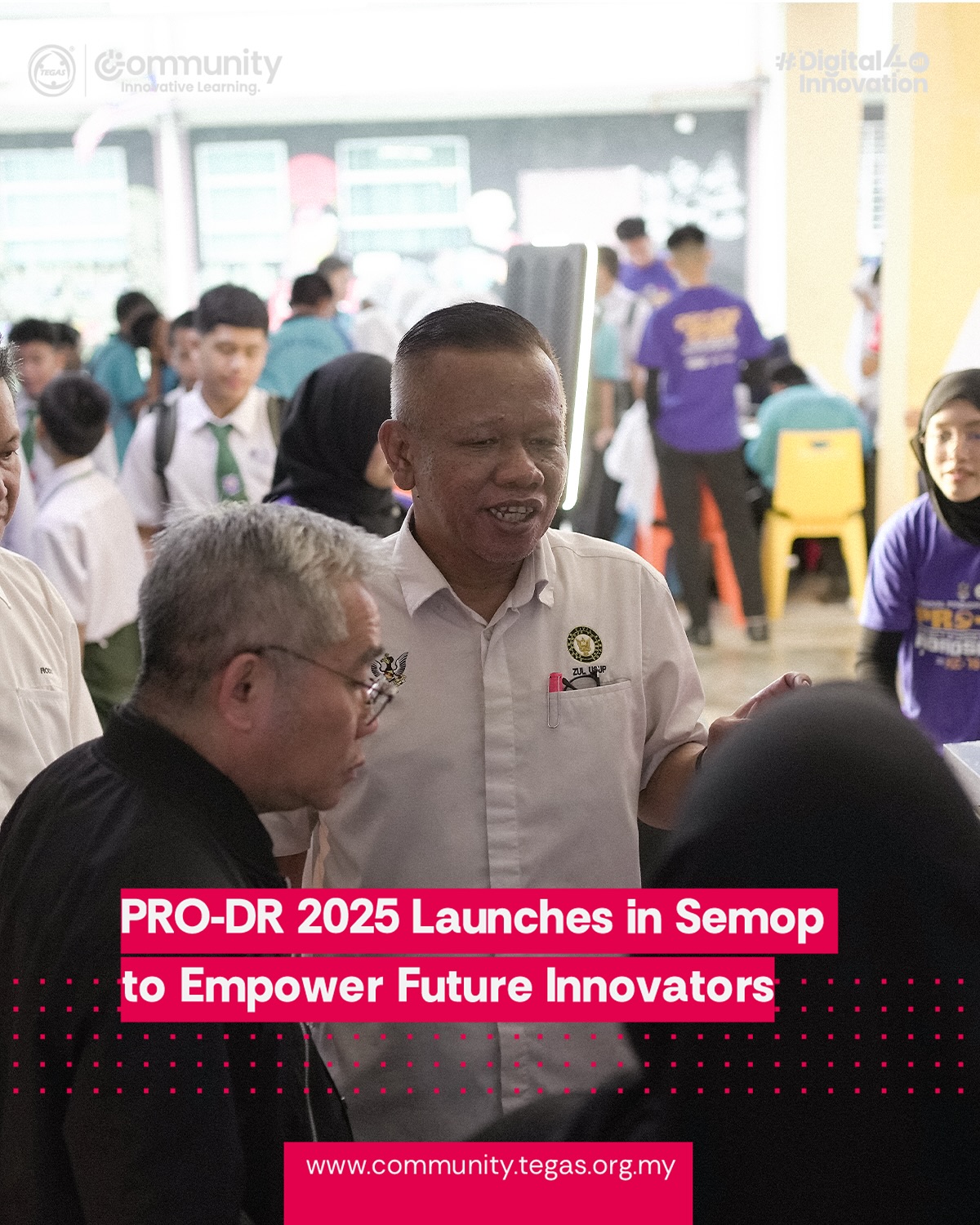 The launch featured a symbolic gimmick, the screening of PRO-DR’s 10-year journey video, and the handover of a Think & Tinker Mini Lab to SMK Semop to support students in exploring innovation and STEM education. Afterwards, the VIPs toured the Education and Career Expo, where students continued to explore various career and study opportunities.