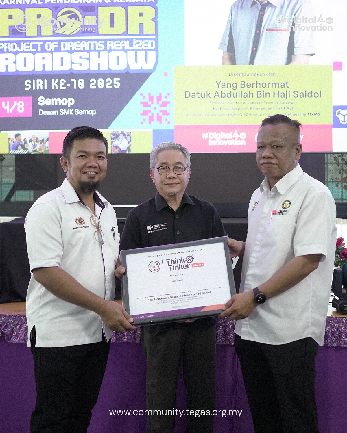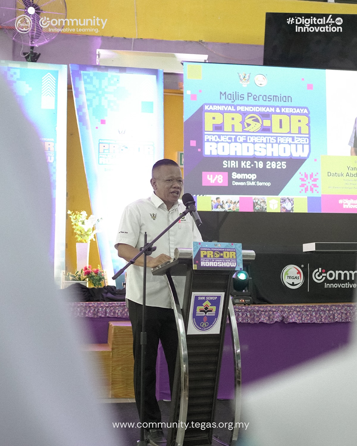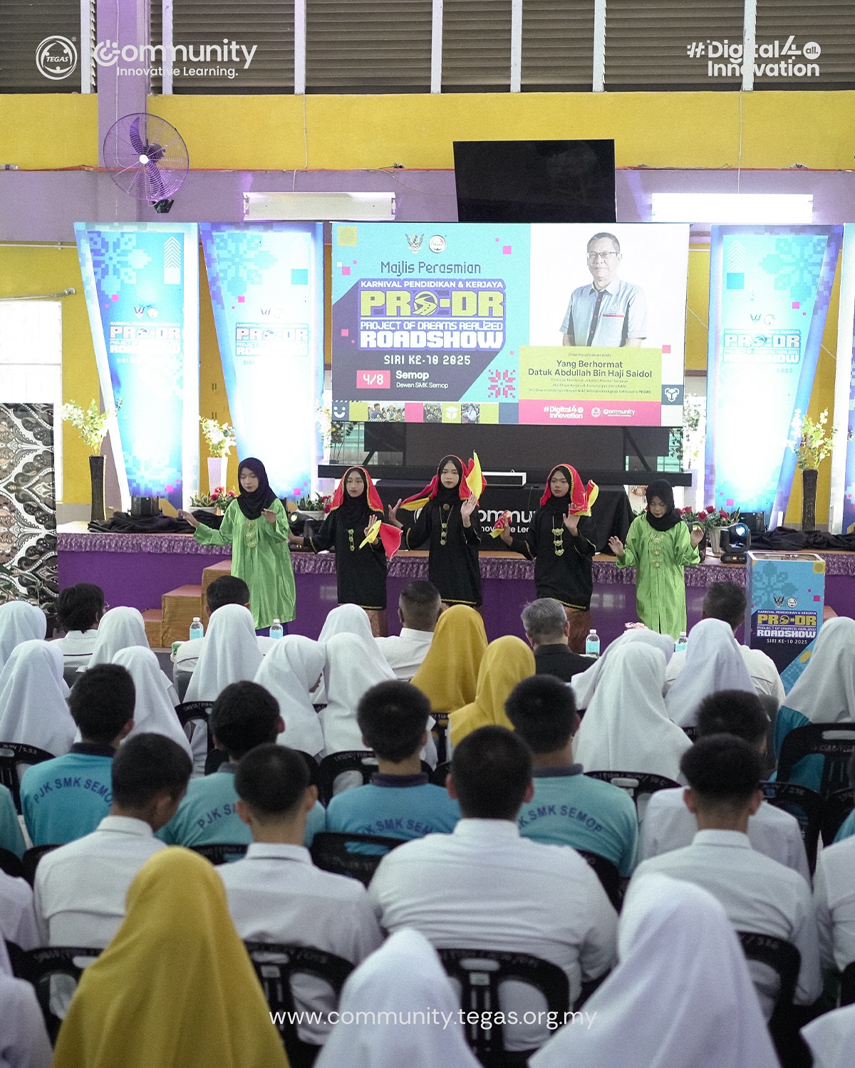 The sixth stop of the Project of Dreams Realized (PRO-DR) 2025 Roadshow began today at Dewan SMK Semop, with students, school leavers, teachers, and the local community showing strong early interest.