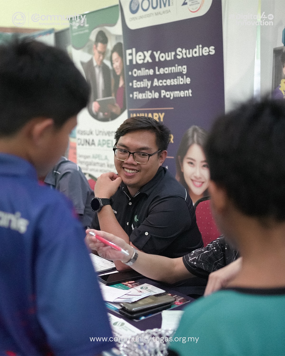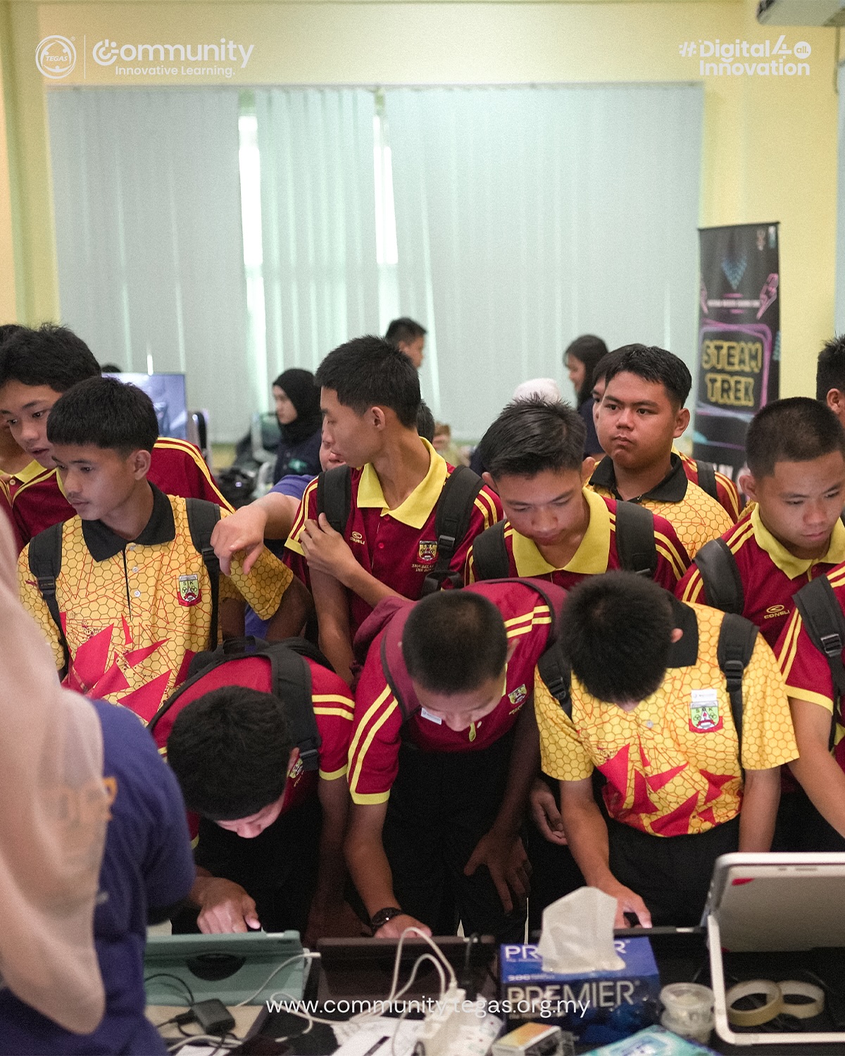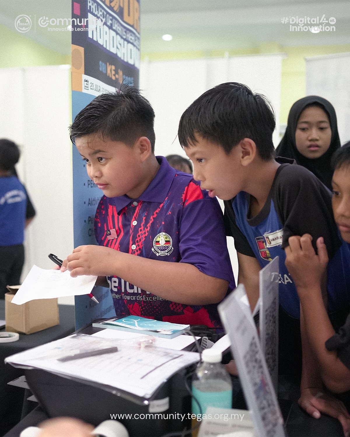 The launch featured the symbolic handover of the T&T Mini Lab to SMK Belawai (worth RM15,000), the PRO-DR 10-Year Journey video, and a tour of the Education & Career Expo, where students actively engaged with participating institutions.