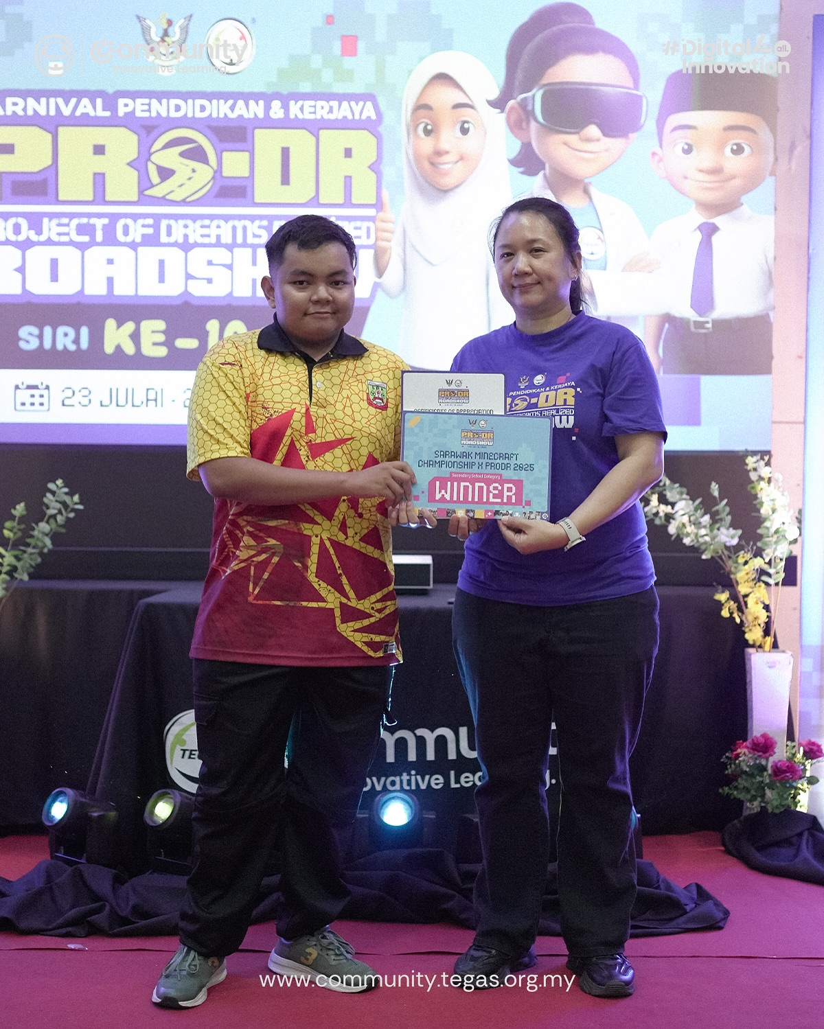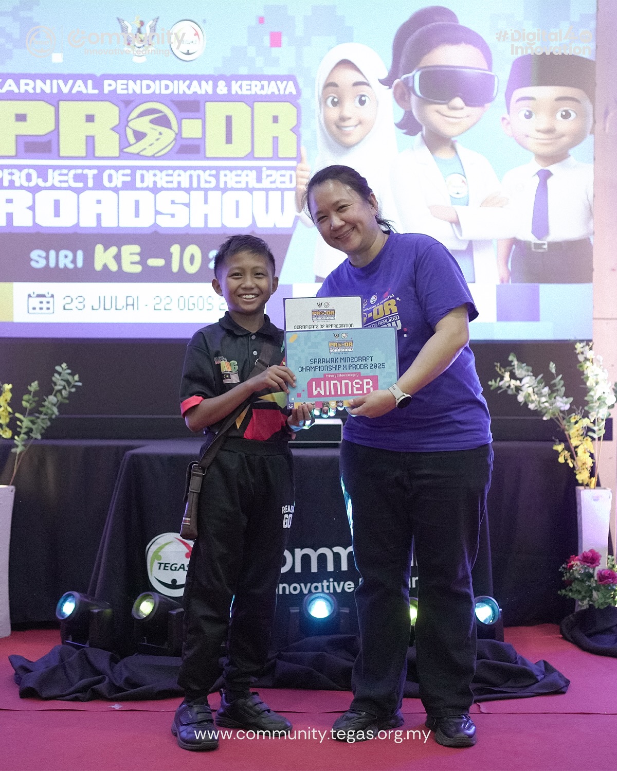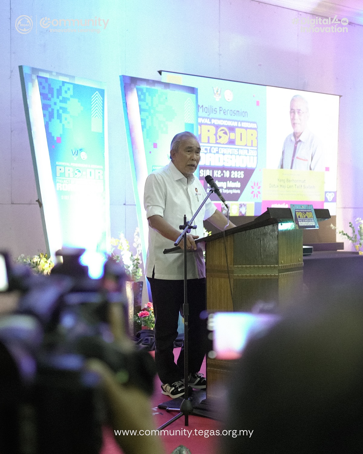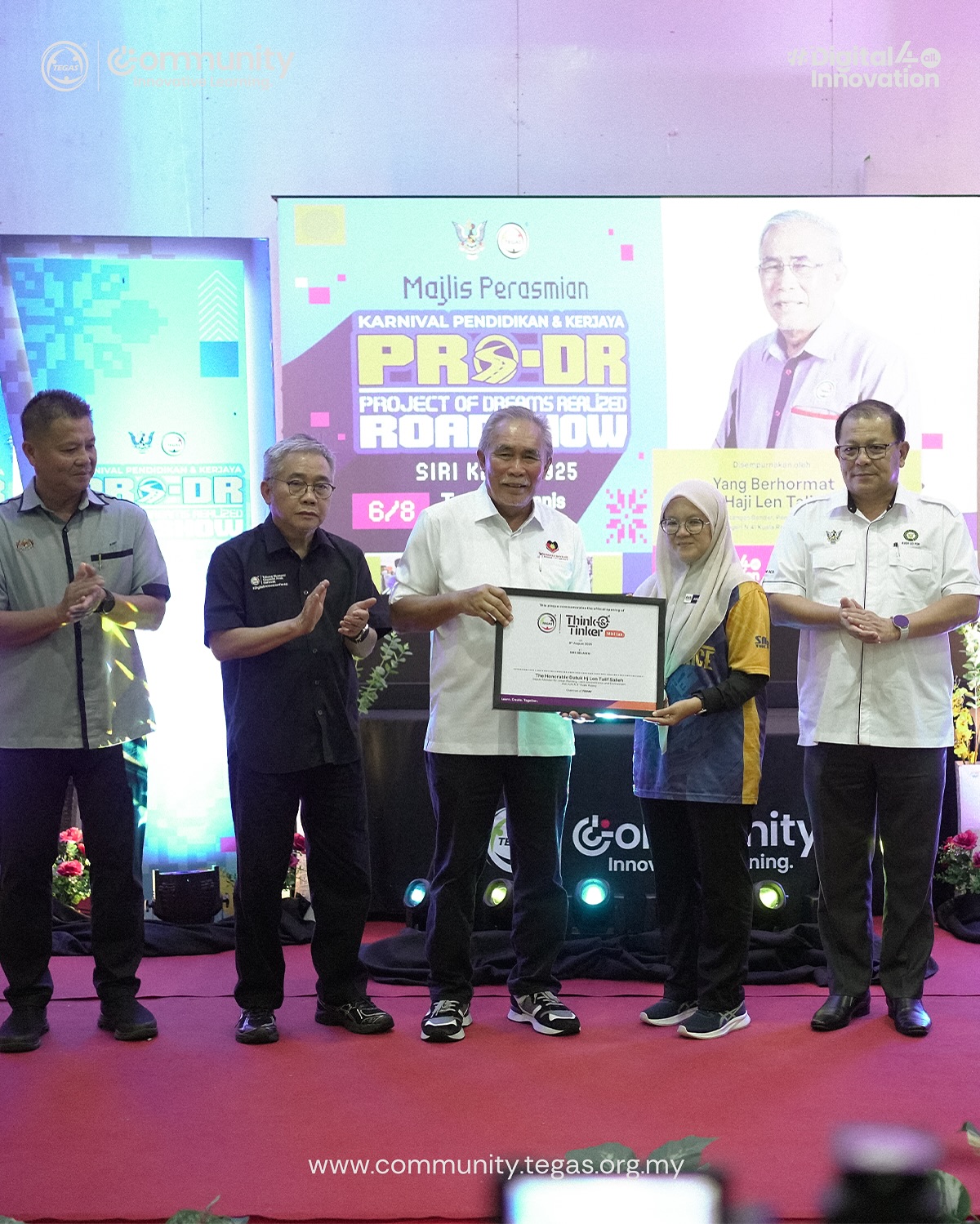 The eighth stop of the Project of Dreams Realized (PRO-DR) 2025 Roadshow was officiated by YB Datuk Haji Len Talif Salleh, Deputy Minister for Urban Planning, Land Administration, and Environment, ADUN N.41 Kuala Rajang and Chairman of the TEGAS Board of Trustees.